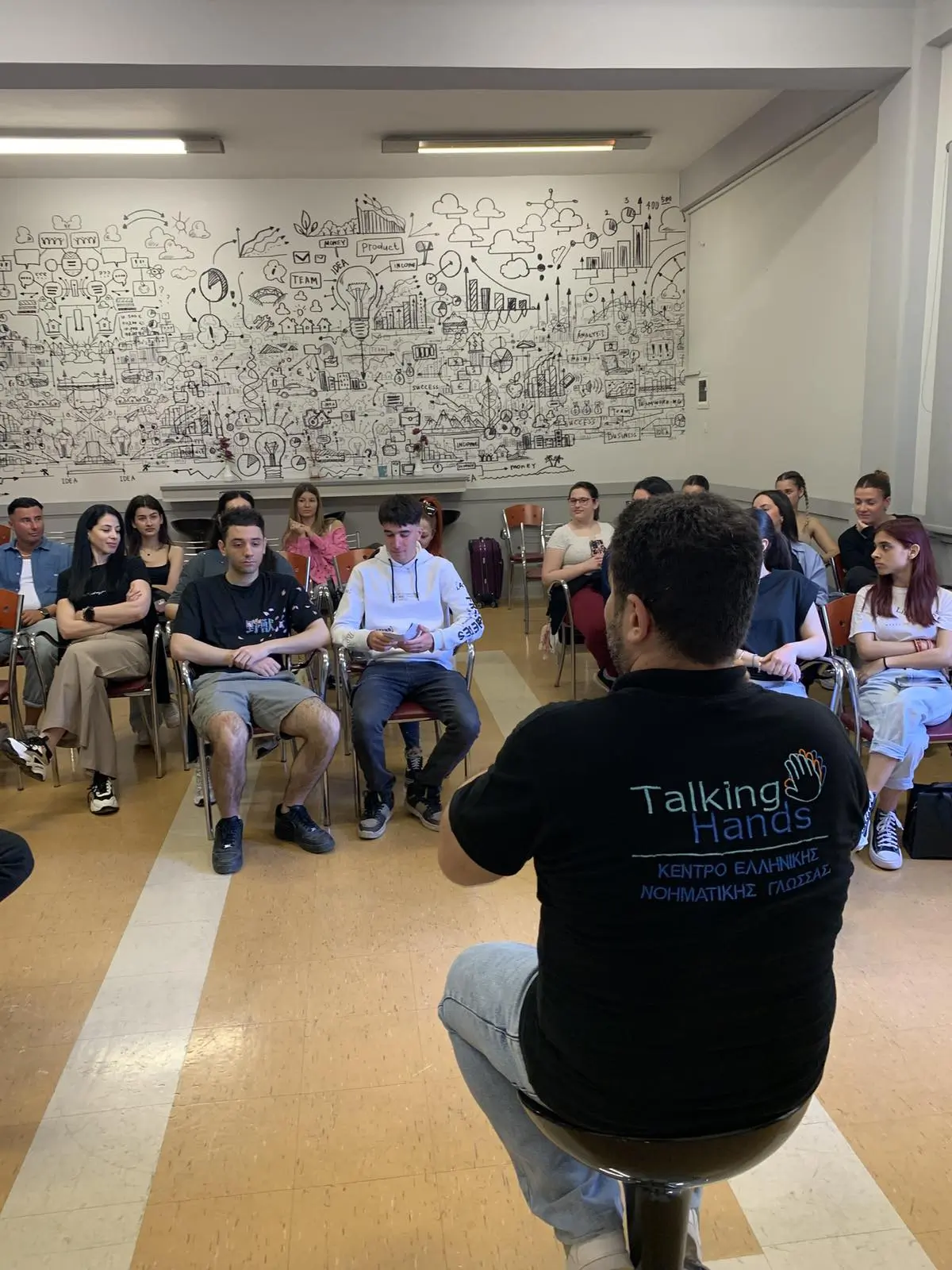 Οι σπουδαστές συμμετείχαν ενεργά, έμαθαν βασικές κινήσεις και φράσεις και είχαν την ευκαιρία να κατανοήσουν τον τρόπο με τον οποίο ένα άτομο με δυσκολίες στην προφορική επικοινωνία αντιλαμβάνεται τον κόσμο.